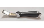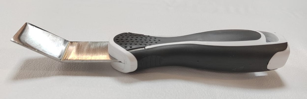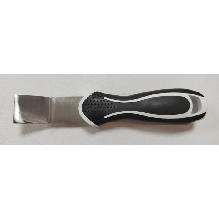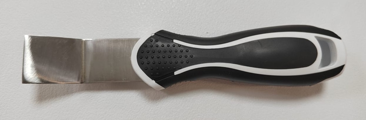Лопатка изогнута под углом в 30º рабочая поверхность 25 мм. Эргономично лежит в руке. Изгиб металлической части спроектирован так, чтобы удобно было заправить потолок не повредив обои и потолок.